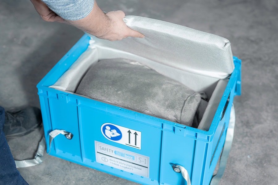 De SafetyBATTbox S-1 kan worden gebruikt als transport- en opslagcontainer.